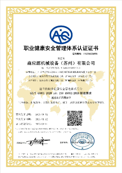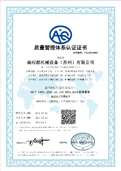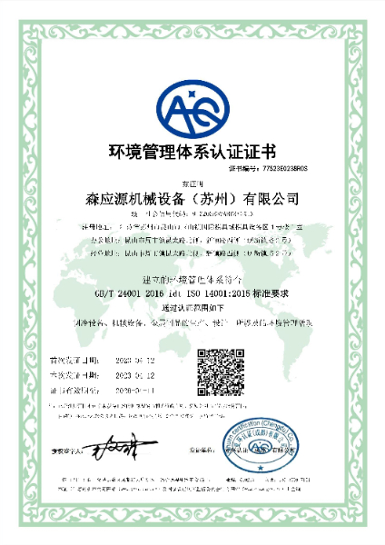 森應(yīng)源機(jī)械設(shè)備(蘇州)有限公司全面取得iso認(rèn)證管體系:質(zhì)量體系認(rèn)證,環(huán)境管理體系認(rèn)證,職業(yè)健康安全管理體系認(rèn)證。